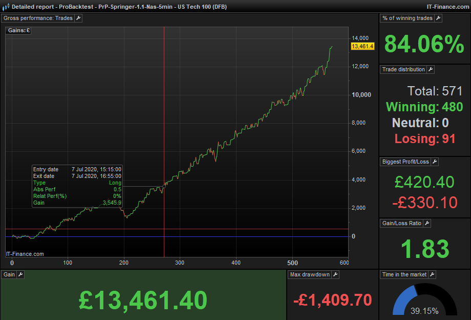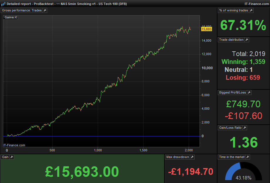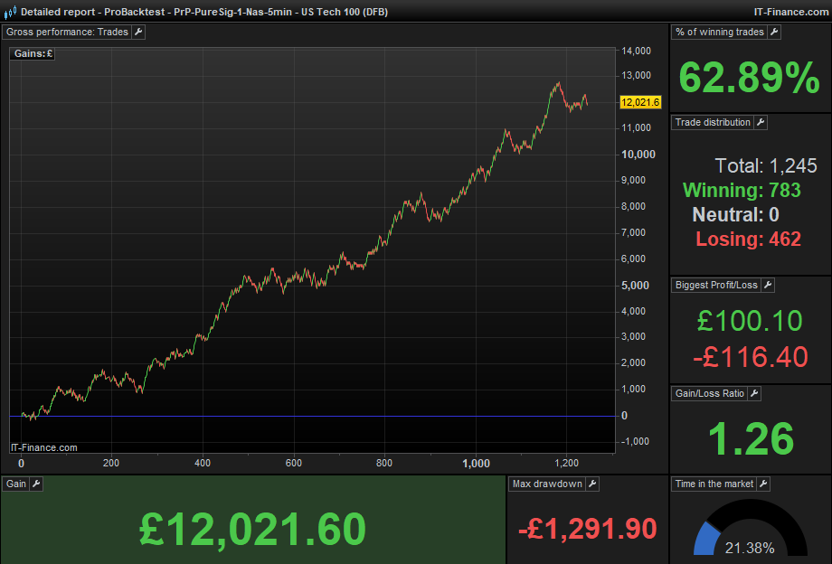 Another PureSig algo that this time is based on the NASDAQ. Built with no optimisation, this algo eliminates the risk of over optimising the indicators and wins on pure talent.